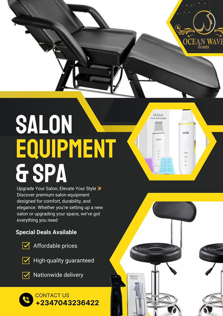 - Modern Salon Chairs & Beds – Designed for client comfort and long-lasting use.